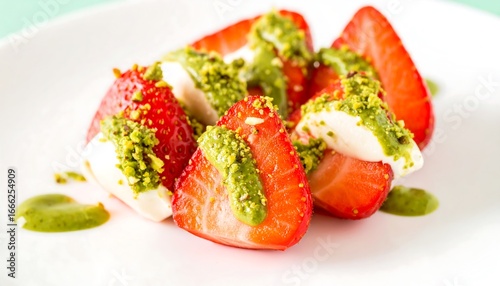 strawberry, dessert, fruit, healthy, food, delicious, sweet, snack, summer, light, refreshing, plate, white, green, topping, creamy, salad, tasty, vegan, vegetarian