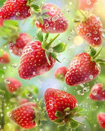 Fresh Strawberries with Water Droplets in a Vibrant Outdoor Setting