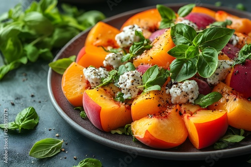 Fresh Summer Peach and Ricotta Salad with Basil Gourmet Photography for Culinary Inspiration