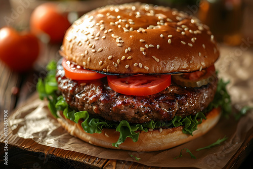 fresh tasty burger on wood table