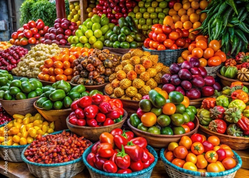 fruit, market, fresh produce, vibrant, colourful, natural, organic, seasonal, autumn, food, agriculture, traditional, harvest, healthy, ripe, sweet, tropical, exotic, closeup, background, edible, still life, ingredient, nourishment, nature, local, farm, rustic, culinary, delicious, juicy, fresh food, vegetarian, food photography, market stall, texture, vivid colors, wholesome, culinary arts, natural food