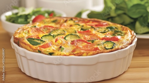 Fresh Vegetable Frittata in White Dish on Kitchen Table