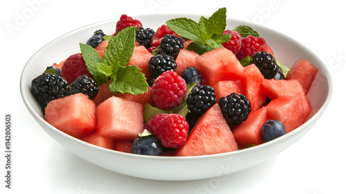Fresh watermelon and berry salad with mint leaves, perfect for summer