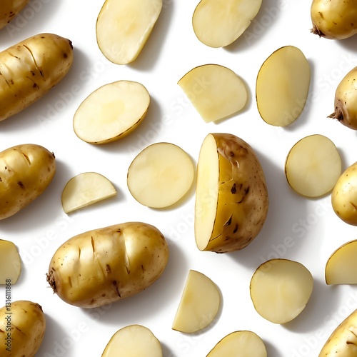 potato, potato, vegetable, vegetable, food, ingredient, ingredient, cooking, receipe, healthy, diet, nourishment, organic, fresh, farm, agriculture, topview, overhead, white background, isolated, closeup, detail, culinary, garnish