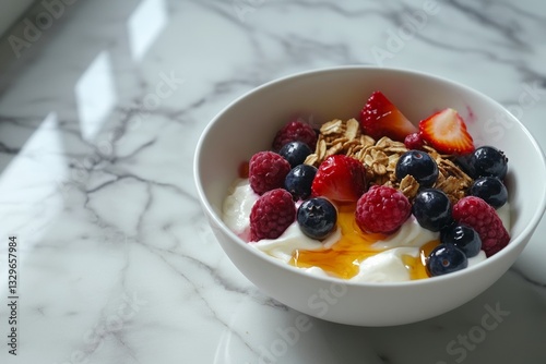yogurt, berry, granola, marble, breakfast, fresh, bowl, blueberry, raspberry, strawberry, healthy, nourishment, delicious, white, countertop, food, dairy, grain, cereal, morning, snack, meal, wholesome, organic, fruit, diet, vibrant, colourful, appetising, balanced, vitamin, mineral, refreshing, tasty, epicure, culinary, ingredient, eating, dish, kitchen, lifestyle, simple