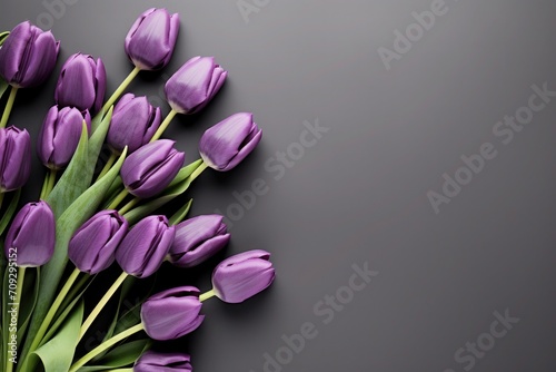 Fresh-cut purple tulips offer a pop of color in a monochrome setting, background for Women´s day, Mother´s day