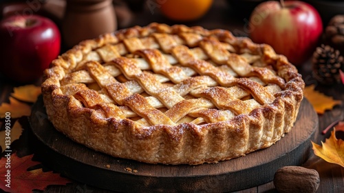 Freshly Baked Apple Pie on a Rustic Wooden Table. Generative AI