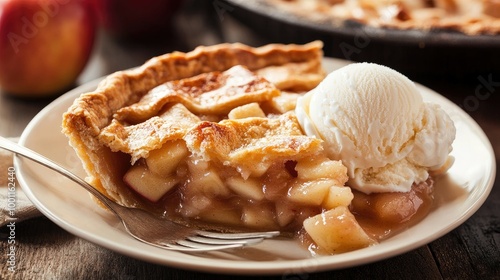 Freshly Baked Apple Pie with Ice Cream on Plate