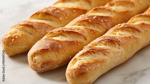 Freshly baked artisan bread loaves on a marble surface showcasing golden crust and soft interior ideal for culinary and baking designs