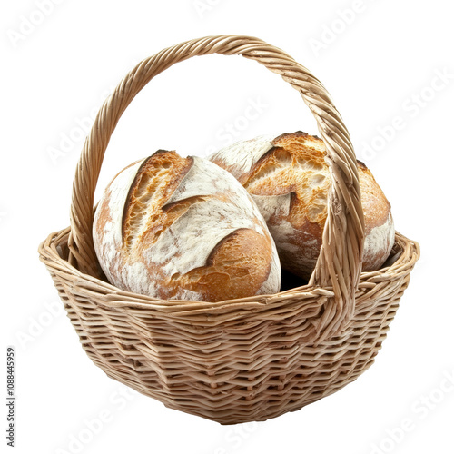 Freshly baked bread loaves in a wicker basket