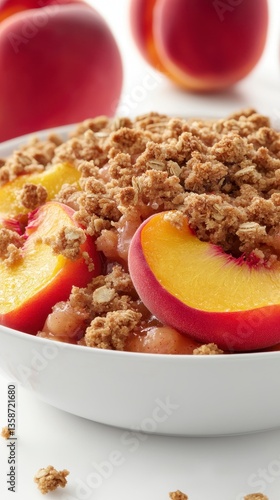 peach, crisp, bowl, dessert, crunchy, fresh, fruit, summer, sweet, healthy, natural, vibrant, oat, homemade, delicious, ripe, yellow, organic, baking, snack, tasty, epicure, seasonal, picnic, juicy, receipe, colourful, ingredient, cookery, nourishment, harvest, vegetarian, appetising, wholesome, treat, family, indulgent, delightful, chef, nature