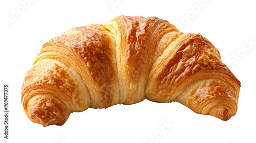 Freshly baked croissant with golden brown, flaky exterior, perfect for breakfast or snack. Its buttery aroma and soft texture make it an irresistible treat.