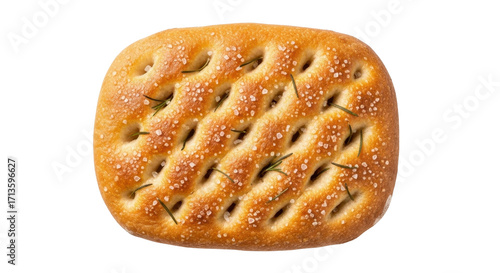 Freshly baked focaccia bread with salt and rosemary isolated PNG with Transparent Background