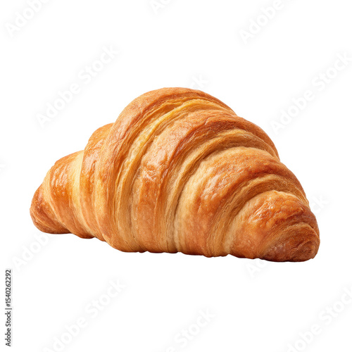 Freshly Baked Golden Croissant on White Background Showing Flaky Texture and Delicious Layers of Dough Transparent background or png