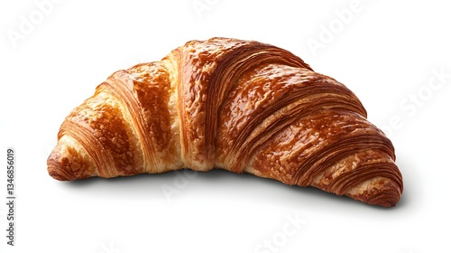 Freshly Baked Golden Croissant Pastry with Flaky Layers and Crispy Texture on White Background
