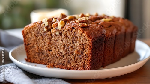 Freshly Baked Nut-Top Loaf Cake on a White Plate