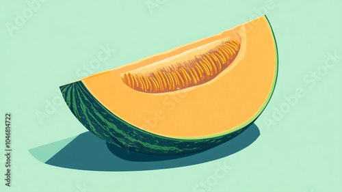 Freshly cut cantaloupe on a light green background showcasing its juicy interior slices