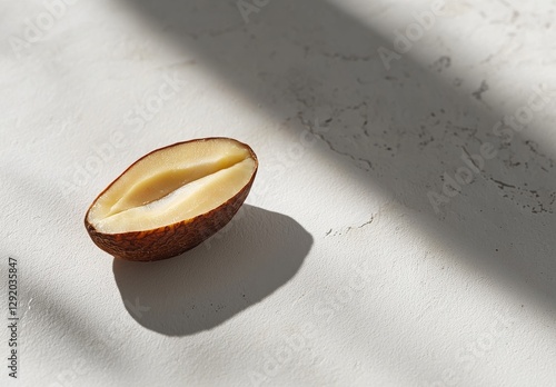 Freshly Cut Tropical Fruit Halved Against Soft Light with Shadow on Smooth Surface