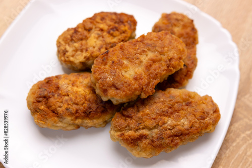 Freshly fried cutlets are placed on a plate.