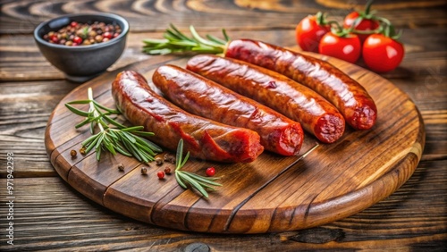 Freshly grilled Pepperoni sausage on a wooden board , pepperoni, sausage, grilled, fresh, meat, delicious, spicy, smoked, protein