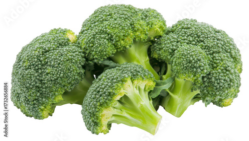 Freshly harvested broccoli clusters green florets and crisp stems. arranged aesthetically on a clean white background. ideal for culinary or health-related content