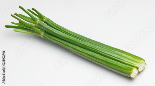 Freshly harvested okra displayed on a crisp white background