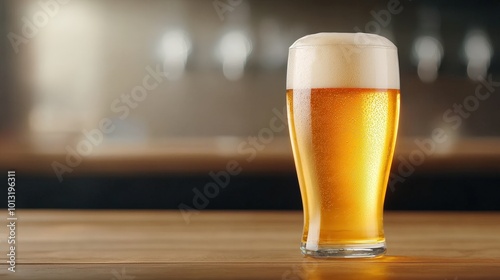 Freshly Poured Cold Beer in a Glass on Bar Counter