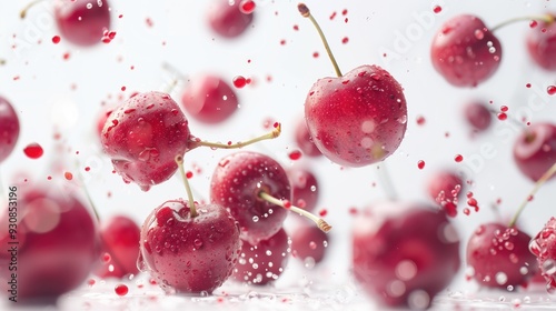 Freshly Rinsed Cherries Falling in a White Kitchen, Red Currants Cherry Fruit Wallpaper, Raw Culinary Ingredient Backdrop, Isolated Organic Food Background for Restaurant Cookbook Recipe Agriculture