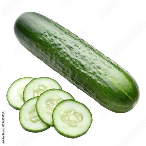 Freshly Sliced Cucumber Revealing Its Crisp Juicy Interior Isolated on Transparent Background