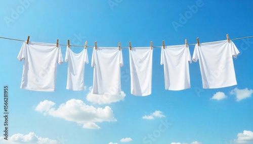 Freshly Washed Laundry Drying on Clothesline, Vibrant Blue Sky, Summer Idyll, Cleanliness, Serenity