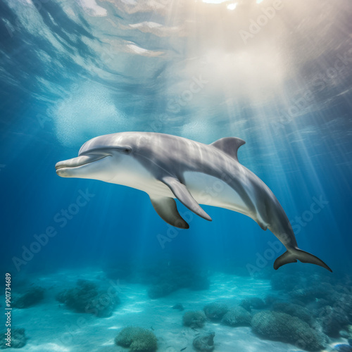 Fröhlicher Delphin schwimmt im Meer, Generative AI