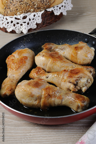 food, chicken, pan, meat, drumstick, calorie, fried, snack, cooking, crockery, kitchen, luncheon, brunch, breakfast, lunch, dinner, regale, treat, homemade, baked