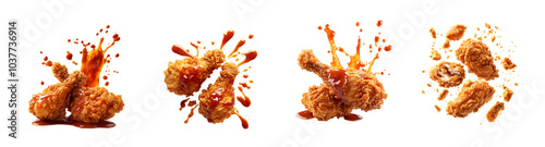 Fried chicken with sauce isolated on a transparent background