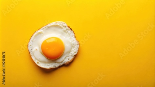 Fried egg on vibrant yellow background with space for text for foodie blog or menu design