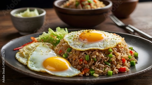 food, egg, delicious, rice, lunch, meal, cookery, healthy, dinner, dish, asian, fried, eatery, plate, cooking, epicure, background, tasty, cooked, white, vegetable, meat, asia, breakfast, fresh, traditional, spicey, red, sauce, fried rice, asian cuisine, closeup, chinese, indonesian, egg, chicken, fried egg, bowl, oriental, side, life, nasi, thai, green, sunny, morning, onion