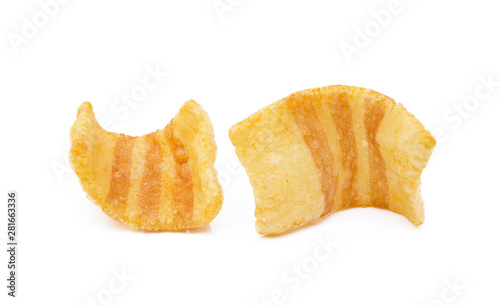 Fried wheat-potato snack with smoked bacon flavor isolated on white background