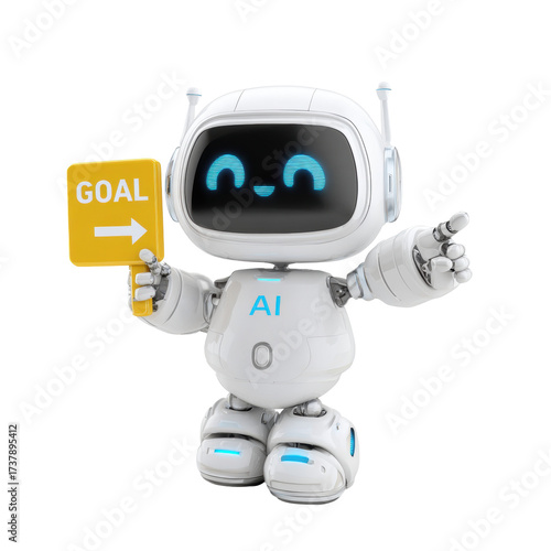 Friendly AI Robot Holding Goal Sign on Transparent Background