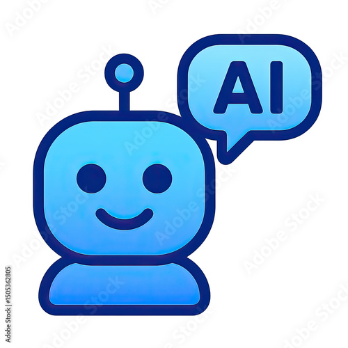 Friendly Blue Ai Robot Icon with Speech Bubble on Transparent Background