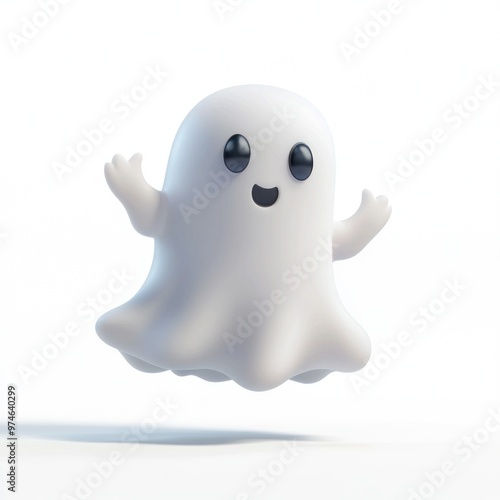 Friendly Cartoon Ghost for Halloween Celebrations on White Background with Copy Space.