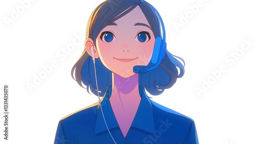 customer service, representative, headset, communication, support, digital, technology, friendly, smiling, professional, workplace, modern, illustration, missy, call center, phone, interaction, help, assistance, engagement, virtual, remote, office, profile, casual attire, employee, service, connection, blue shirt, cheerful, satisfaction, dialogue, response, visual, contact, approachable