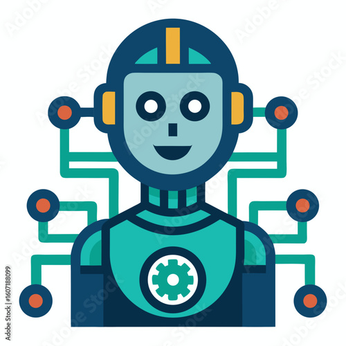 robot, artificial intelligence, ai, automation, technology, future, cyborg, android, android, icon, illustration, vector, isolated, design, cartoon, character, digital, electronic, engineering, science, innovation, connection, circuit, circuitry, gear, cog, network, communication, robotic, modern, flat, clip art, graphic, symbol, avatar, interface, tech, futuristic, smart, intelligent, learning, friendly, smiling