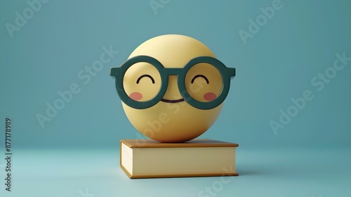 Friendly Smiling Book with Glasses in 3D Render,Educational Icon for Learning Theme