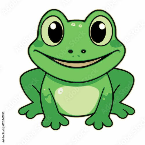 Friendly smiling green cartoon frog illustration a cheerful amphibian character with big eyes and a welcoming expression for children