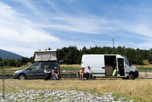 Friends camping with camper van