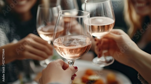 Friends gather to celebrate International Day of Happiness, raising glasses filled with rosé. Laughter and joy fill the atmosphere, embodying the spirit of wellbeing and connection