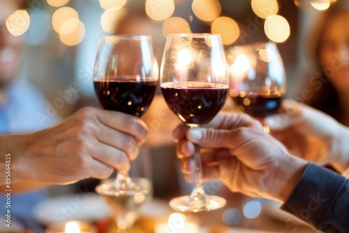 wine, goggles, red, toast, friends, dinner, celebration, clinking, hand, festive, atmosphere, warm, light, closeup, together, gesture, celebratory, gathering, social, enjoyment, companionship, relaxing, evening, eatery, table, dining, food, drink, alcohol, beverage, party, occasion, event, happy, smile, laughter, friendship, love, family, togetherness, bonding, special, memorable