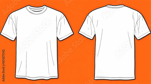 front, back, view, design, plain, white, illustration, graphic, apparel, template, clothing, style, fashion, simple, basic, casual attire, tee, shirt, garment, textile, product, display, showcase, image, picture, drawing, vignetting, outline, colours, orange, background