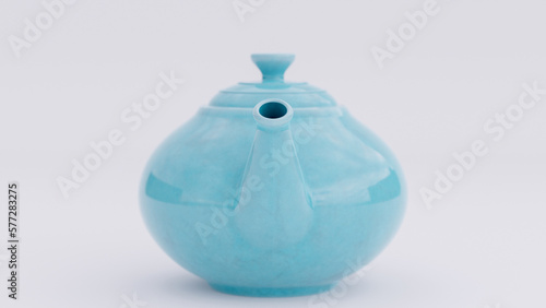 Front view cyan traditional ceramic teapot on white background premium photo 3d render