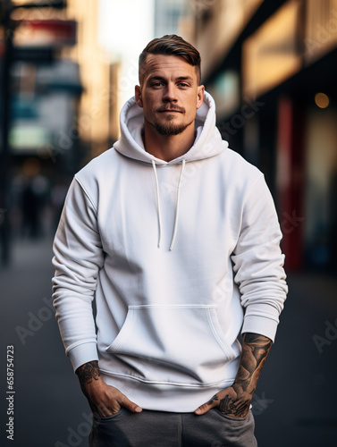 white, hoodie, casual attire, front, sweater, man, blank, fashion, wearing, cotton, clothing, fabric, male, wear, style, man, posing, sweatshirt, young, apparel, shirt, model, standing, clothes, trendy, mock-up, hood, textile, street, urban, empty, clean, fleece, mock, guy, sport, presentation, racked, branding, print, person, jumper, kangaroo, hipster, european