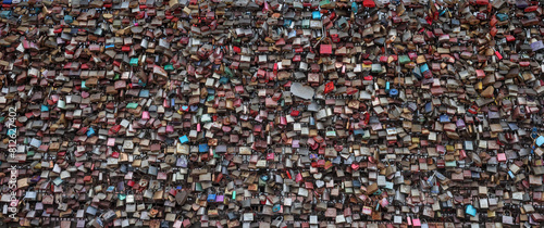 Frontal view, love locks wall, bridge, Cologne (Köln), Germany. Background use.